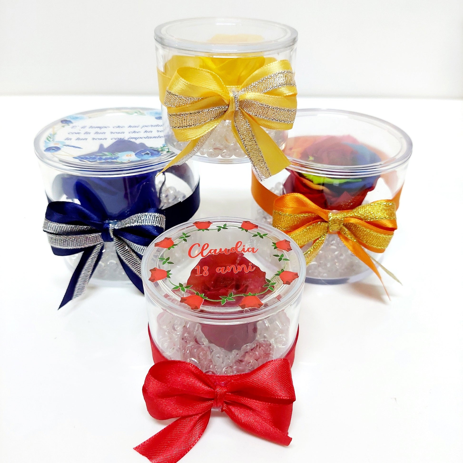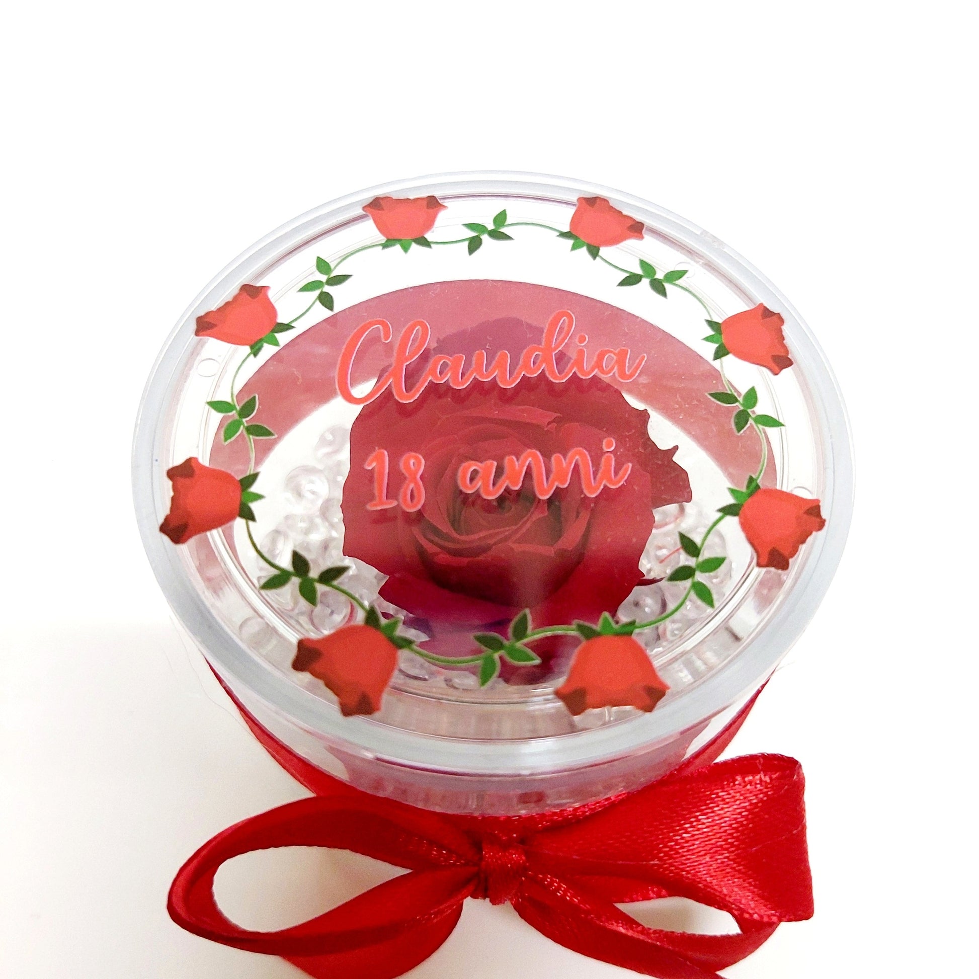 - Rosa stabilizzata, confezionata in cofanetto di plexiglass trasparente